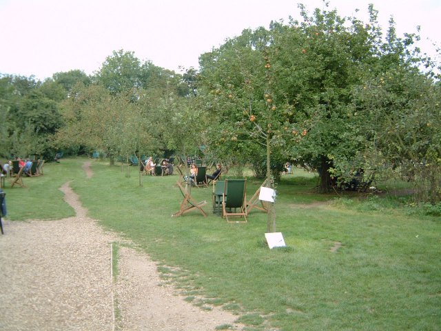 The Orchard, Grantchester, Cambridgeshire From their website (which has recently been updated): "The Orchard, first planted in 1868, became a Tea Garden purely by chance. A group of Cambridge students asked Mrs Stevenson of Orchard House if she would serve them tea beneath the blossoming fruit trees rather than, as was usual, on the front lawn of the House. They were unaware that, on that spring morning in 1897, they had started a great Cambridge tradition..... "...The students enjoyed their rural tea, and word spread around the colleges. The Orchard soon became a popular ‘up-river resort’ which was well known to Varsity men. The Stevensons’ advertising card also proudly announced that the Orchard was not connected to any Public House. With few exceptions, very little has changed in the Orchard since then....." Except that they serve alcohol now :) Here's a (rather extensive) list (also from the website) of some famous or "well known" people who've wandered through the Orchard and taken tea there (basically name any famous Cambridge bod and add a dash of any A-to-D list celebs you can think of): Bertrand Russell, Wittgenstein, A N Whitehead, Maynard Keynes, G M Trevelyan, Stephen Hawking, Crick and Watson (of DNA fame), Alan Turing (inventor of the Computer), Frank Whittle (inventor of the jet engine), Christopher Cockerell (inventor of the hovercraft), Rutherford (split the atom), Rupert Brooke, E M Forster, Virginia Woolf, Christopher Isherwood, J B Priestley, Lytton Strachey, A E Housman, Edward Thomas, Elroy Flecker, Sylvia Plath, Ted Hughes, Lowes Dickinson, Jeffrey Archer, Salman Rushdie, A A Milne, Leslie Charteris, J. G. Ballard, John Betjemen, King George VI, Prince Charles, Archbishop Runcie, Lord Owen, Lord Harewood, Pandit Nehru, Mallory (of Everest), Cecil Beaton, Norman Hartnell, James Mason, Herbert Lom, Robert Donat, Flora Robson, Emma Thompson, John Cleese, Peter Cooke, Stephen Fry, Hugh Laurie, Gryff Rees-Jones, Eric Idle, Jonathan Miller, Jimmy Edwards, Mike Read (DJ), Tim Rice, Clive James, David Frost, David Attenborough, Mary Archer, Germaine Greer, Alistair Cooke, Burgess, McClean, Philby, Blunt and Cairncross. Not inspiring you? Take a look at some of these pictures, then. Click on the image to see a larger version..... The Orchard website has pictures of the room set up for a wedding, which can be found here. NB: The function room looks like a builder's tip because, well, it was when I took the photos - they were finishing off the refurbishments when we called around.